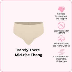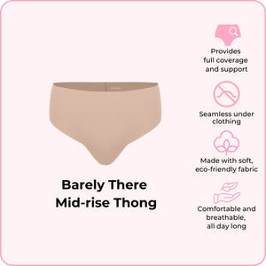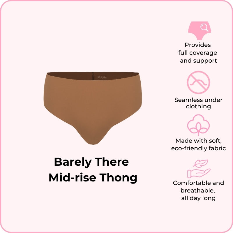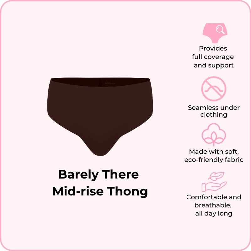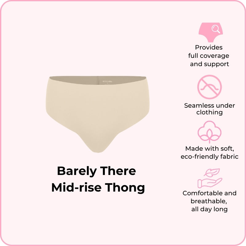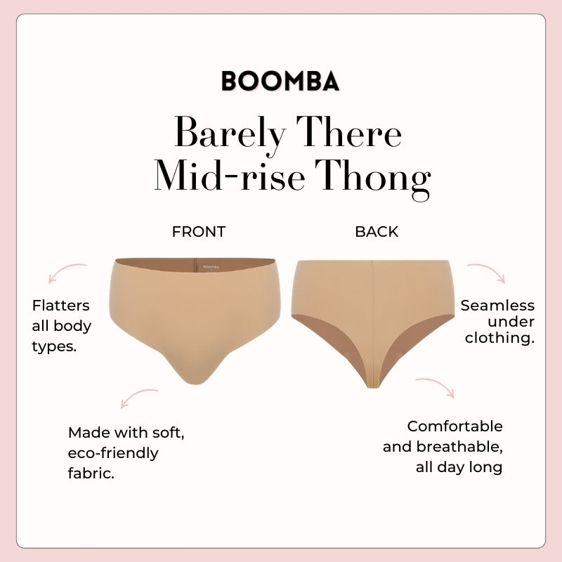Ipinapakilala ang BOOMBA Barely There Mid-Rise Thong – parang second skin, pero mas cute! Gawa sa ultra-soft, seamless na fabric, nagbibigay ito ng all-day comfort at invisible sa ilalim ng mga damit. Ang mid-rise fit ay nagbibigay ng perfect na balance ng coverage at style, kaya perfect ito for everyday wear.
