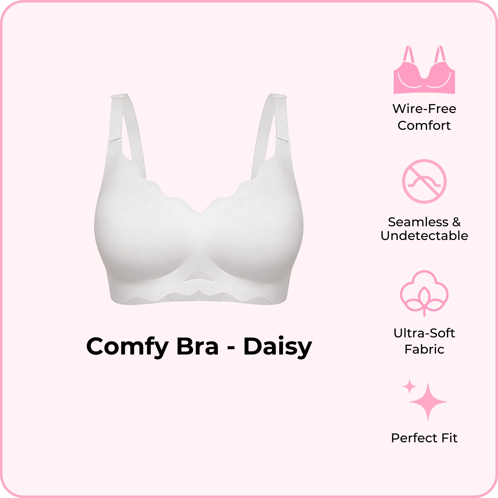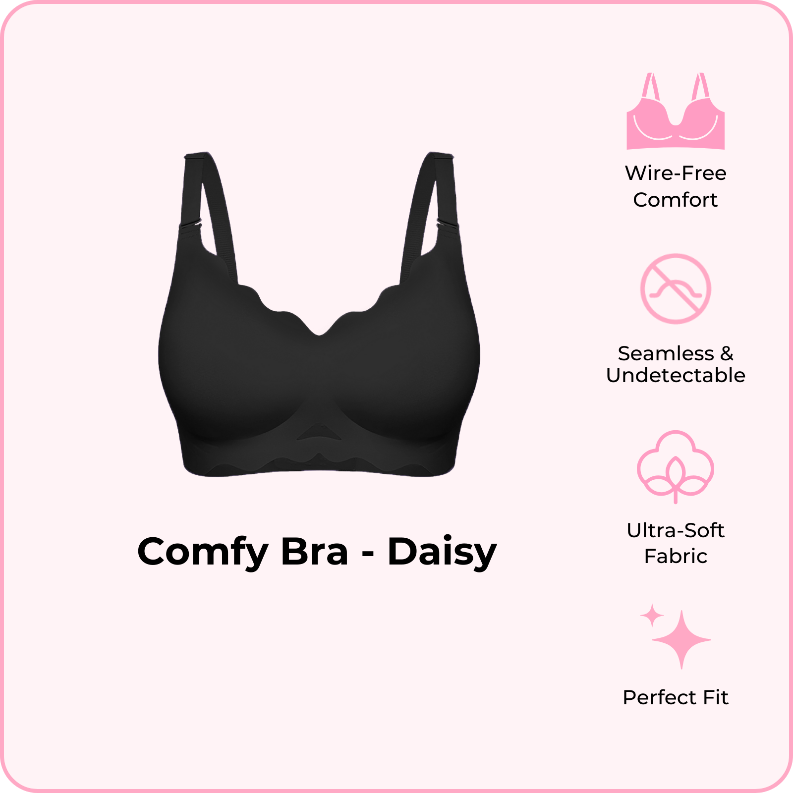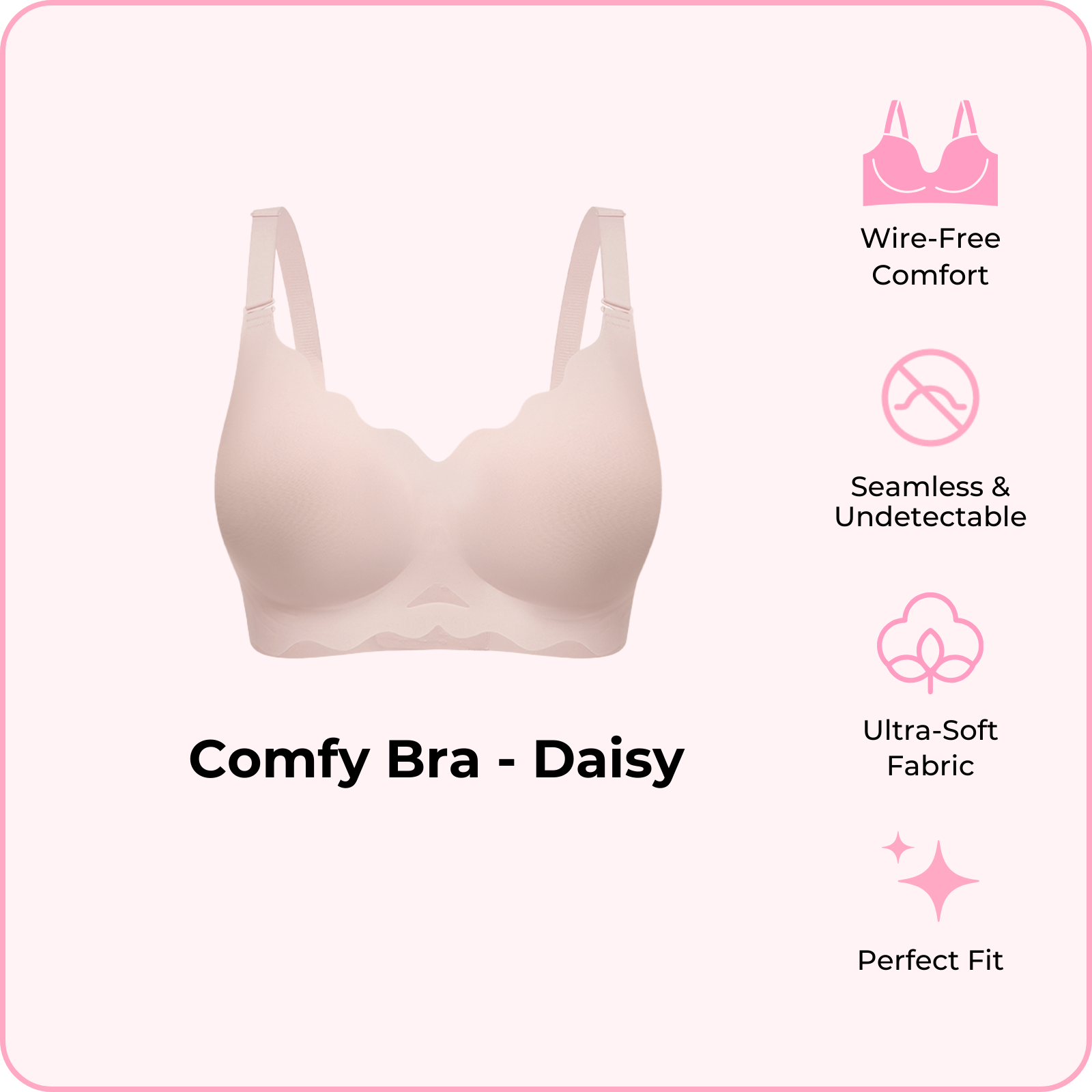 Meet Daisy, the bra that feels good without trying. Walang wires na tumutusok, walang awkward na pag-aadjust—just soft na fabric na parang second skin mo. The seamless cups disappears under anything na isusuot mo, para makapag-focus ka sa araw mo without thinking twice.