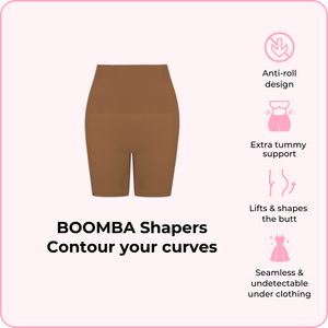 BOOMBA’s Shapers ay naghu-hug sa’yo in all the right places—dinisenyo para mag-contour, mag-lift, at mag-shape ng katawan nang seamless mula brunch hanggang bedtime. Sa aming unique na anti-roll design, wala nang constant tugging or slipping—tanging all-day comfort sa ilalim ng paborito mong outfit para sa smooth at flattering na silhouette.