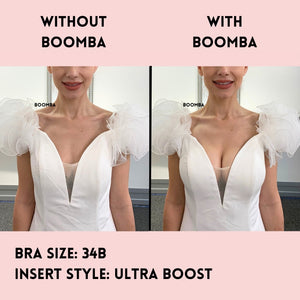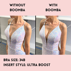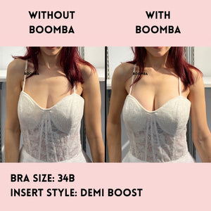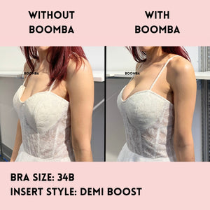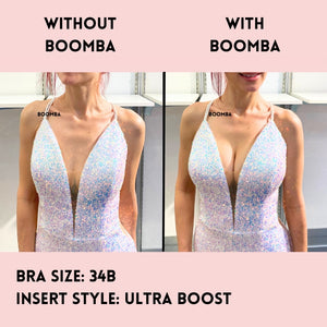 With BOOMBA Inserts' double-sided adhesive feature, they easily stick to your skin onto your clothing, eliminating the possibility of a wardrobe malfunction. With styles ranging from lightly padded to double push-ups, our sticky inserts can add up to TWO cup sizes instantly. No surgery, no downtime!