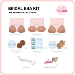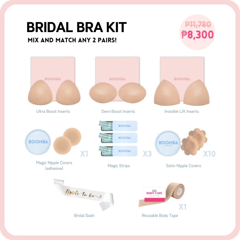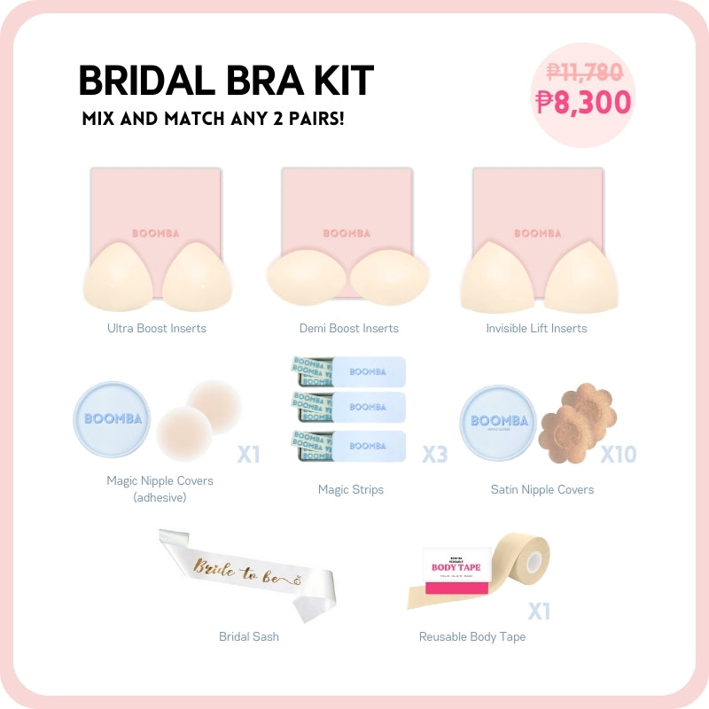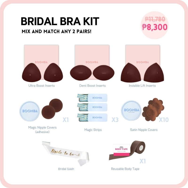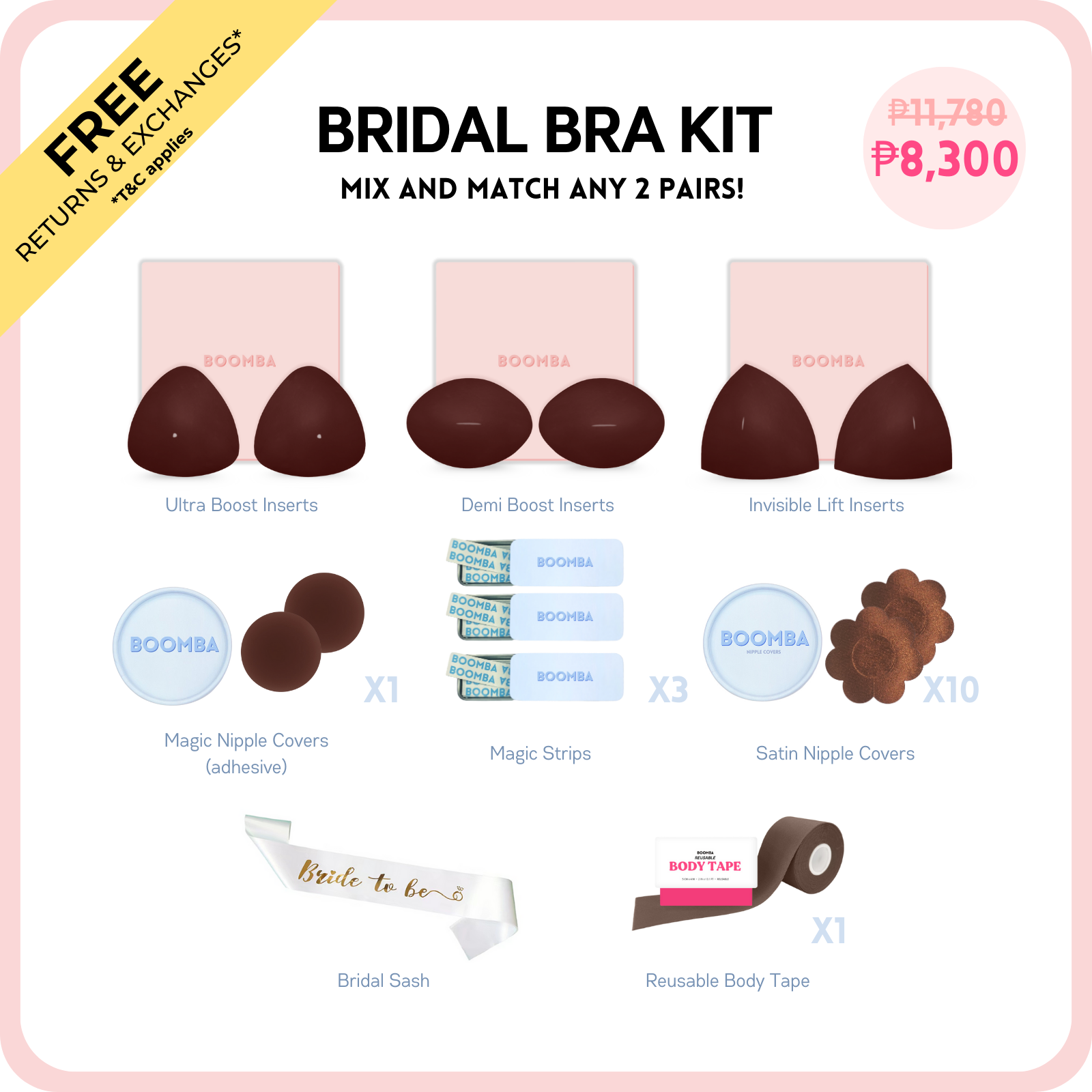 Get completely wedding-ready with the BOOMBA’s Bridal Bra Kit Bundle that has everything a bride needs. From preventing wardrobe malfunctions to creating a more flattering shape, this bundle got you covered.