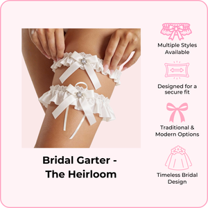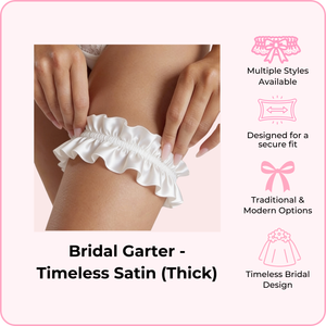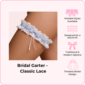 Available in a variety of styles from traditional lace to modern designs, each garter is crafted with soft, delicate fabrics that stay in place securely throughout your big day. Whether you're looking for "something blue" or timeless ivory elegance, we have a style that matches your vision.