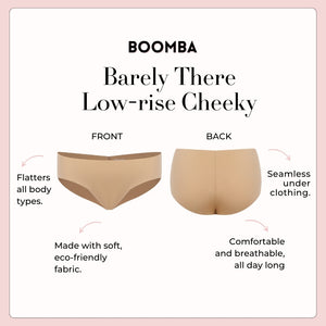 Ang BOOMBA Barely There Low-Rise Cheeky ay ang iyong best-kept secret—ultra-soft, seamless, at sobrang comfy! May low-rise fit at breathable na fabric, kaya invisible ito sa ilalim ng mga damit, giving you a smooth at flawless look. Perfect para everyday wear o para sa seamless fit sa ilalim ng iyong favorite form-fitting outfits. Comfort, meet cute!
