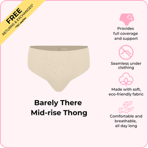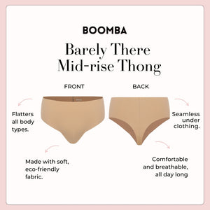 Ipinapakilala ang BOOMBA Barely There Mid-Rise Thong – parang second skin, pero mas cute! Gawa sa ultra-soft, seamless na fabric, nagbibigay ito ng all-day comfort at invisible sa ilalim ng mga damit. Ang mid-rise fit ay nagbibigay ng perfect na balance ng coverage at style, kaya perfect ito for everyday wear.