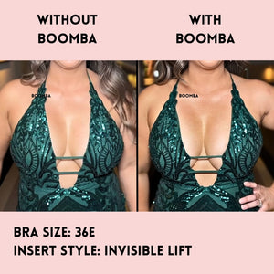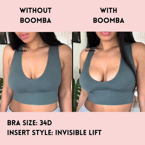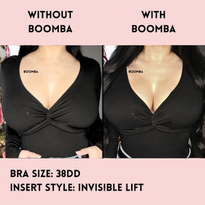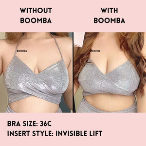 Paki-tandaan na maaaring mag-iba ang resulta depende sa laki at hugis ng dibdib. Ang resulta ay magiging katulad ng double push-up bra. Ang mga padded inserts ng BOOMBA ay pinakamahusay para sa natural na dibdib.