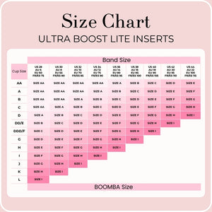 Para sa mga sizes na 34I pataas, available ang aming Demi Boost Inserts (double push-up) hanggang size 34M at ang aming Invisible Lift Inserts (lightly padded) ay available hanggang size 34R.