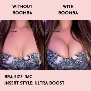 Paki-tandaan na maaaring mag-iba ang resulta depende sa laki at hugis ng dibdib. Ang resulta ay magiging katulad ng push-up bra. Ang mga padded inserts ng BOOMBA ay pinakamahusay para sa natural na dibdib.