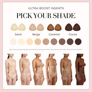 Demi Boost: Mas maikling version ng aming Ultra Boosts. Nagbibigay ng lift at nagdadagdag ng 2 cup sizes—perfect para sa sweetheart necklines!